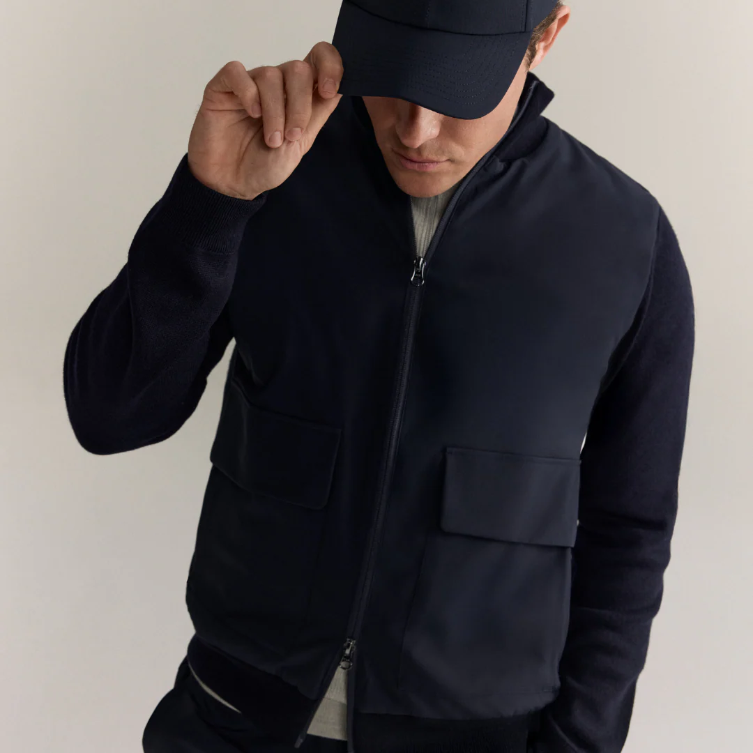 This new hybrid jacket is designed for life on the move. Its technical front with water-repellent features adds functionality to the knitted extrafine merino wool body. Two fashionable patch pockets with hidden zips add both style and practicality, giving you secure storage without compromising the clean design. This jacket is not only super comfortable – its sleek design also provides a sporty chic look for work, travel, and play.