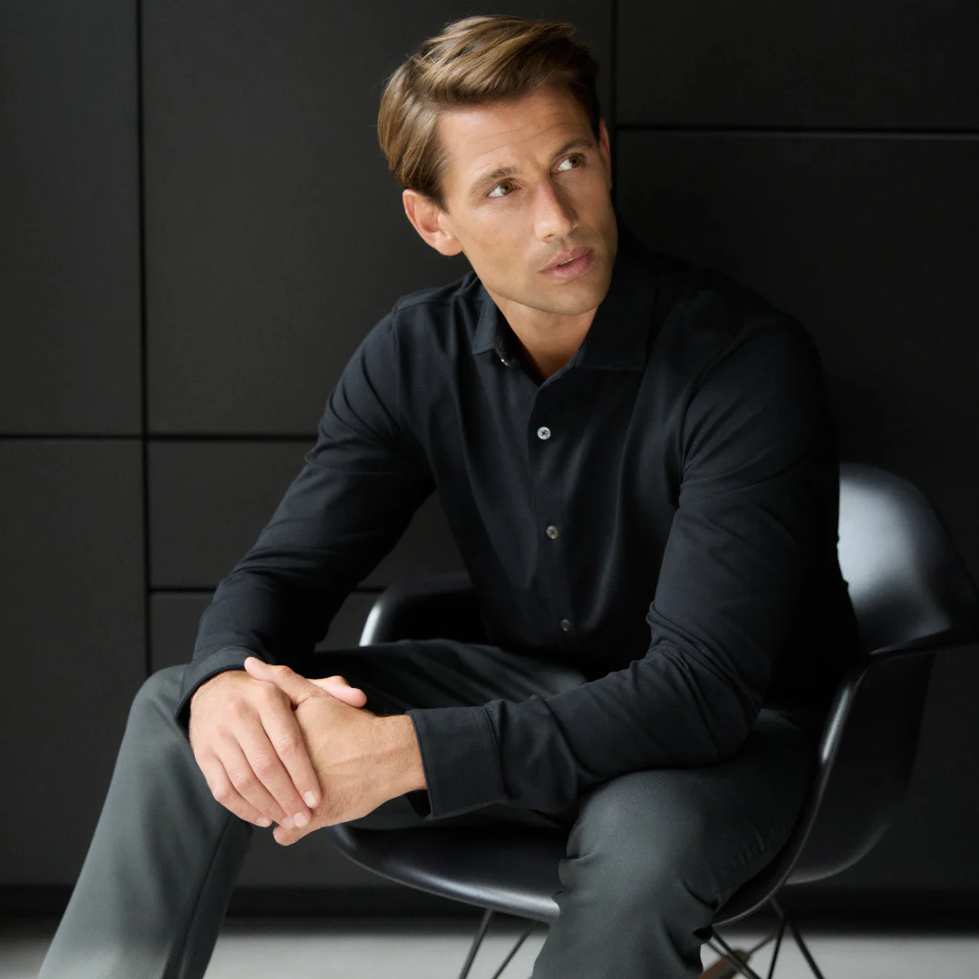Meet DUKE, our high-comfort shirt is cut from soft organic cotton with added stretch and tailored for a modern fit. The dress-shirt collar and real mother-of-pearl buttons are subtle details that reflect our uncompromising standards.