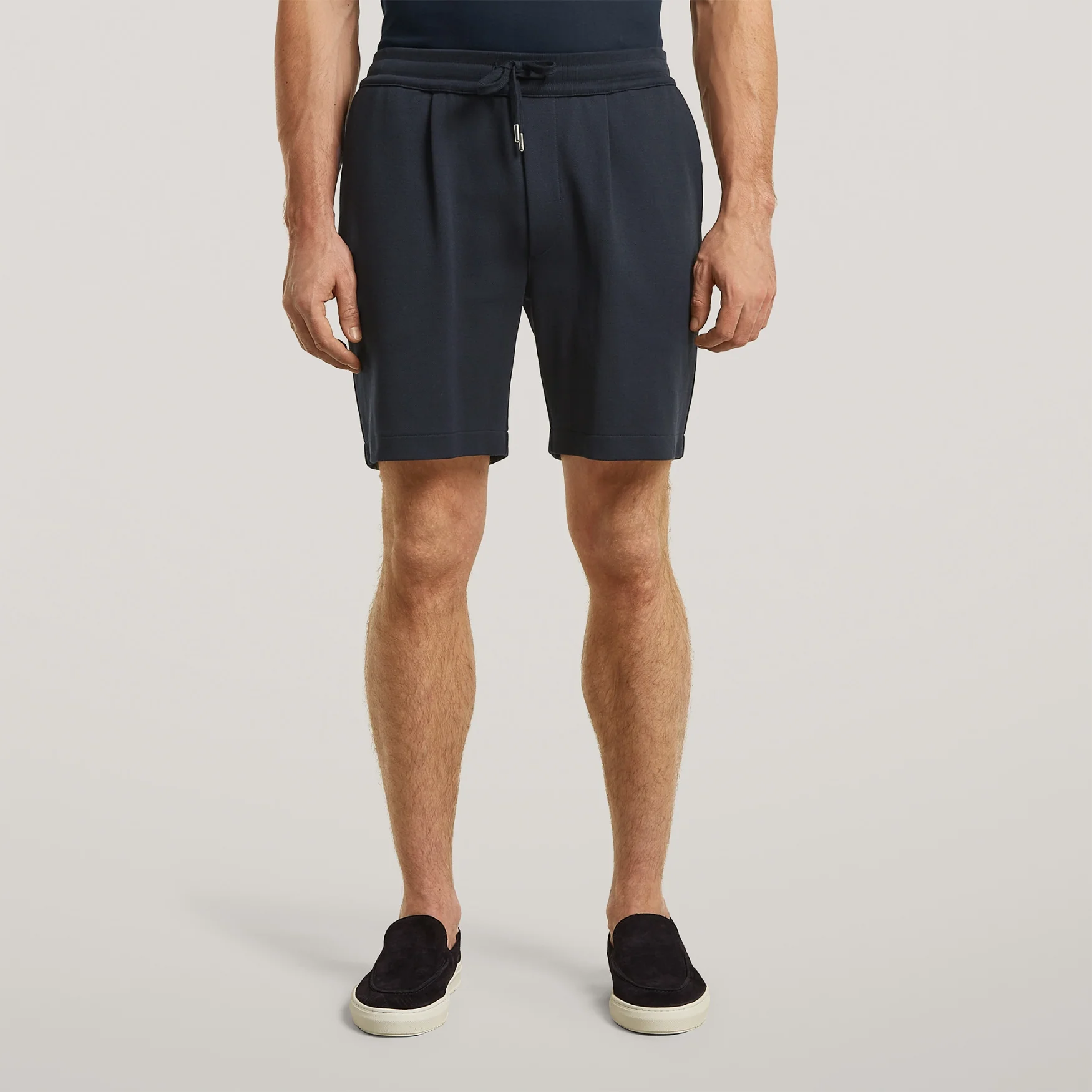 Elevated drawstring shorts from a mercierized interlock piqué. Special details such as a pleated waist and a zipped side pocket elevate this luxurious yet comfortable summer style.