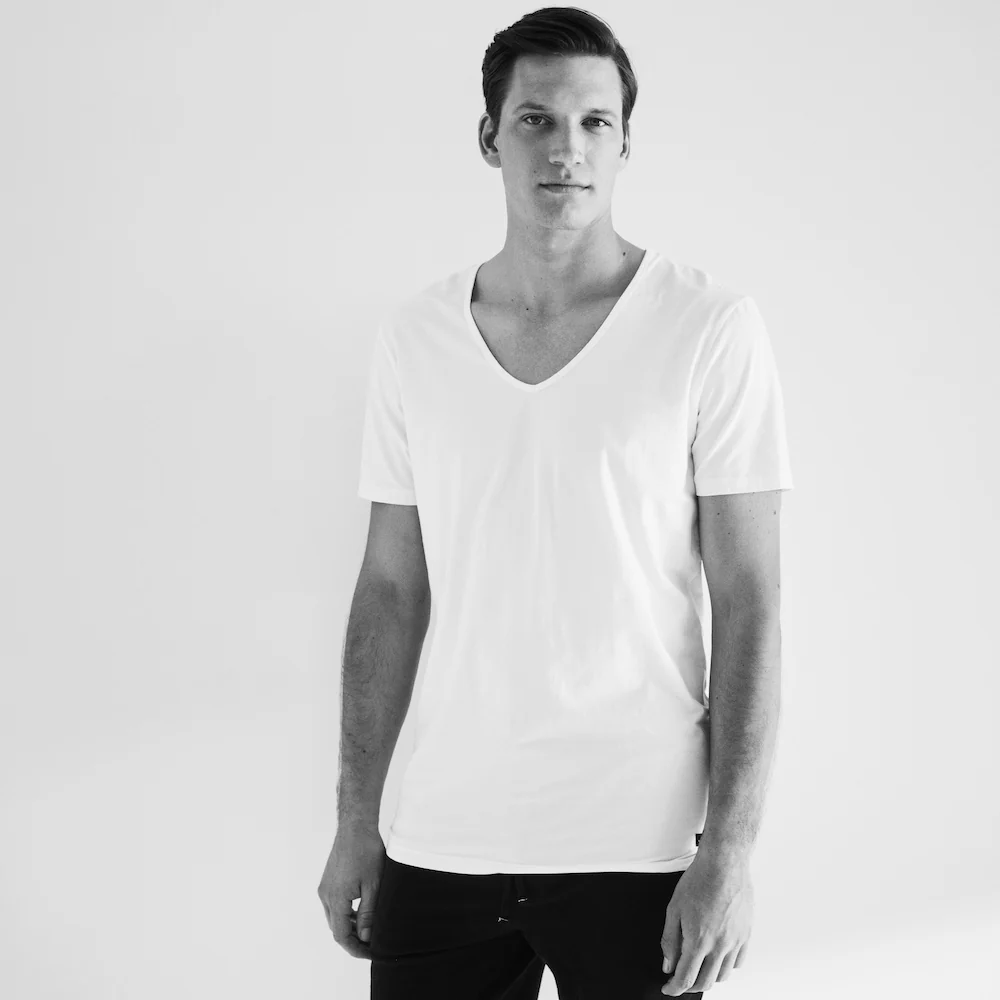 Invest in superlative basics like this classic V-neck T-shirt. The luxurious Pima cotton-blend is smooth against the skin and has a slight stretch to offer the perfect first layer. Made from long-staple cotton fibers which are not only long-lasting but also the lightest and the softest that we have ever felt. Close without being tight and with an ultra-low v-neck, meaning that the T-Shirt allows it to be worn (but not seen) beneath an open shirt collar.