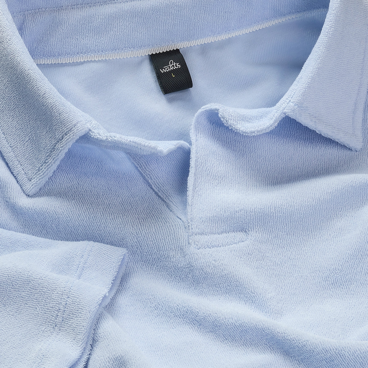 This high summer polo shirt has been made from an ultimate soft and comfy towelling fabric. It has a retro buttonless placket with an open collar for a contemporary look.